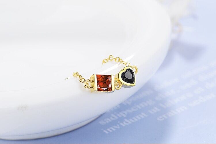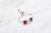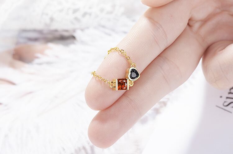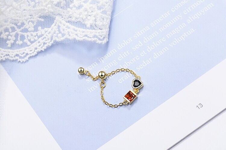 オレンジがかった赤のスクエアストーンとブラックのハートストーンがスタイリッシュなリングです。