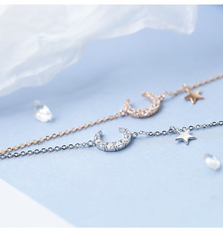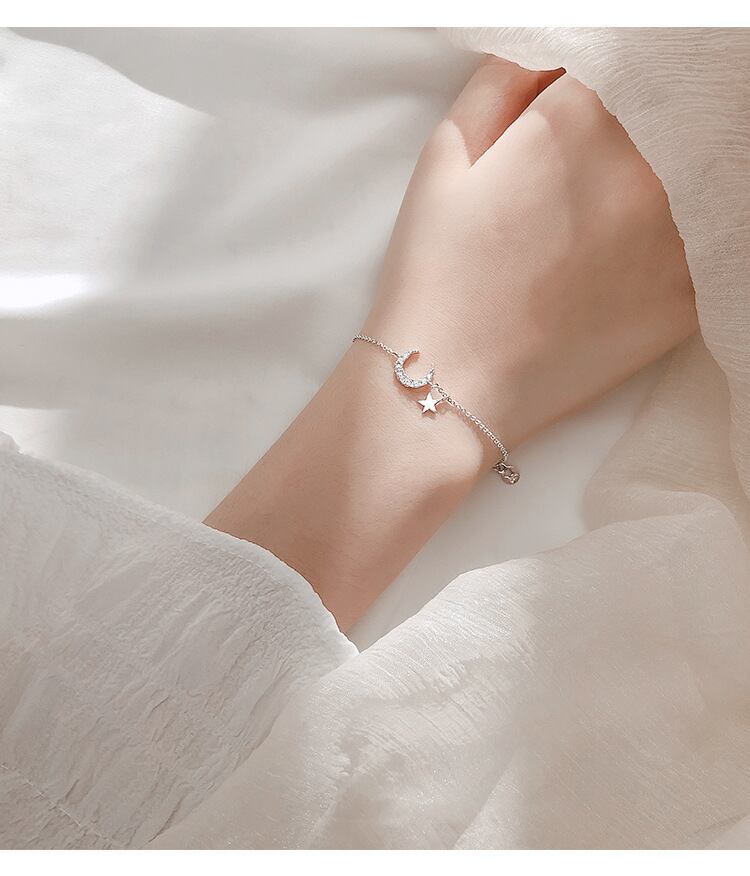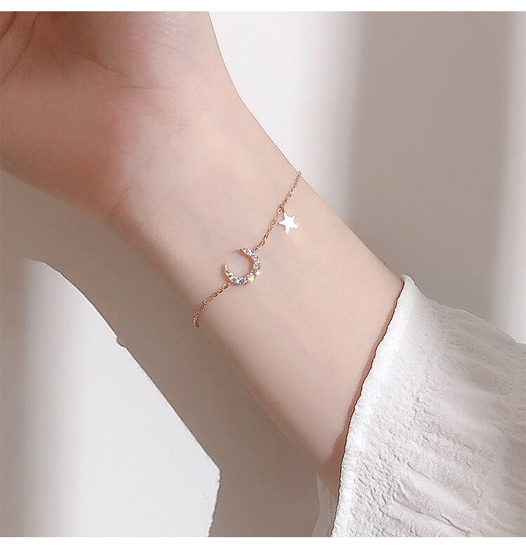 月モチーフにキュービックジルコニアが8粒ついた、キラキラなブレスレットです。