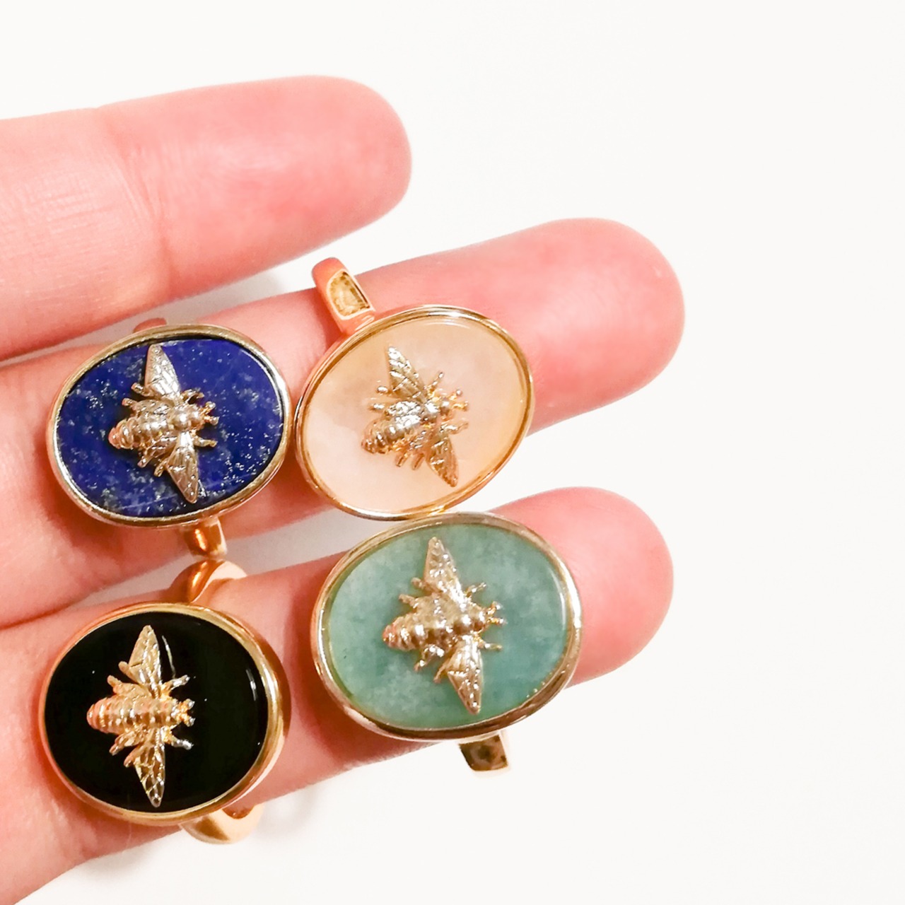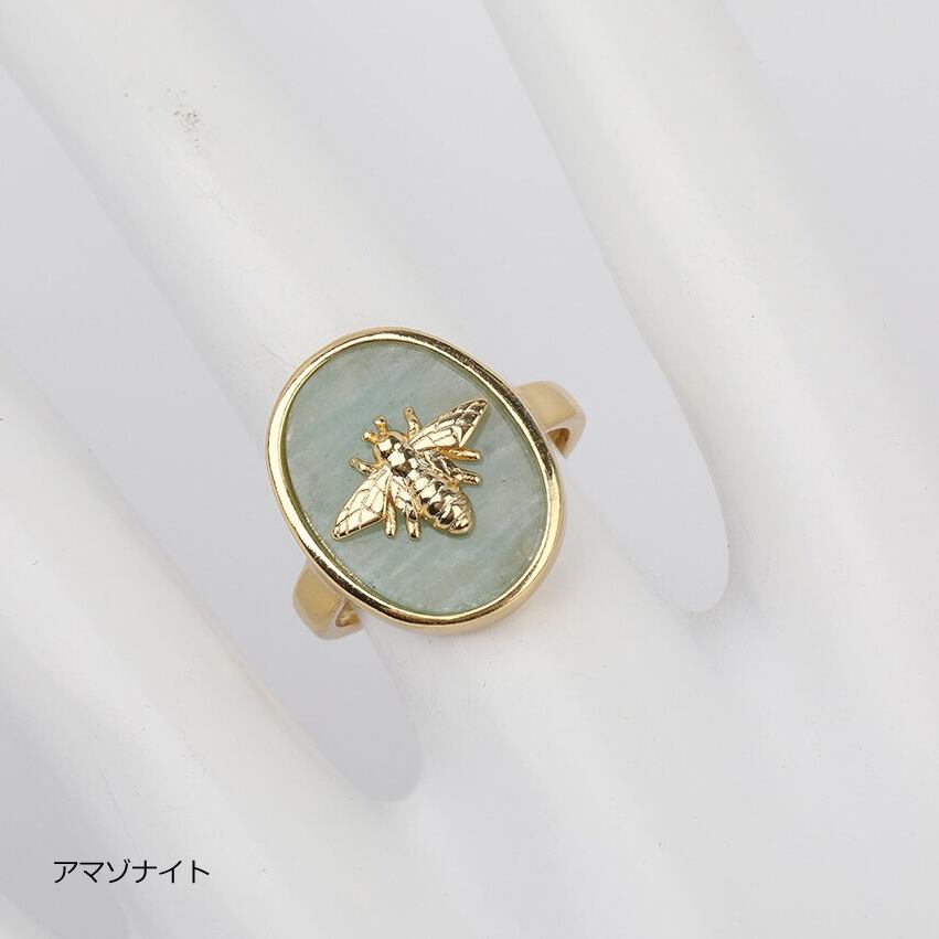 天然石に蜂のメタルモチーフを合わせた指輪です。
