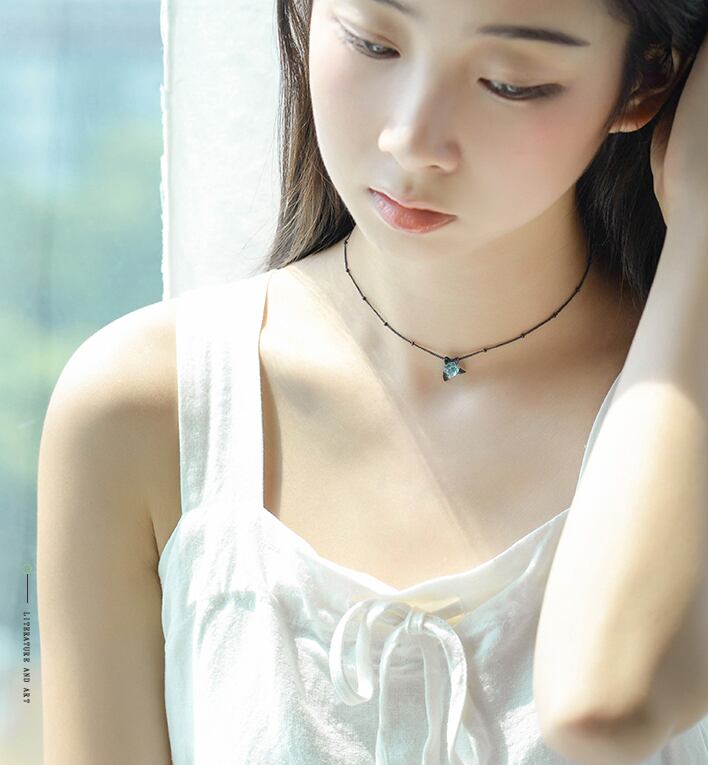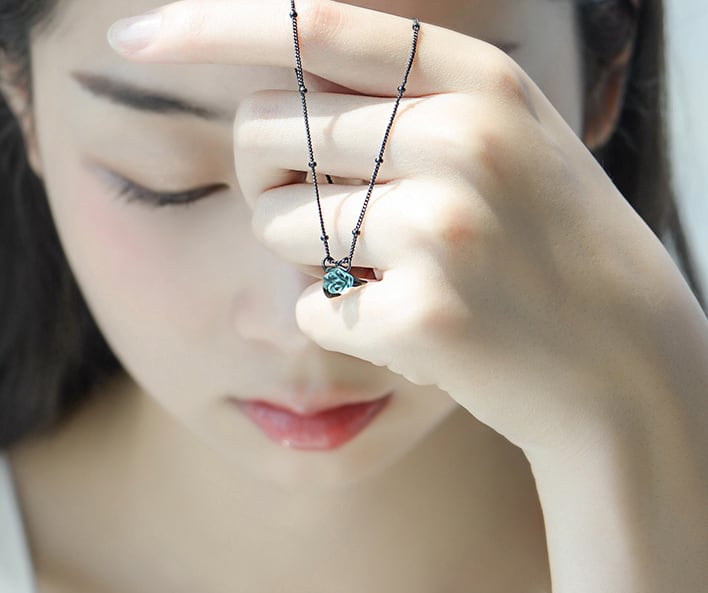 【即納】silver925 ブルーローズネックレス