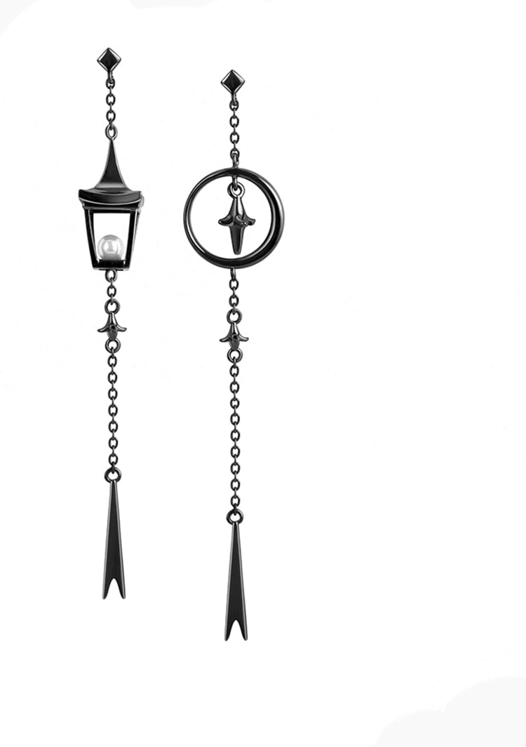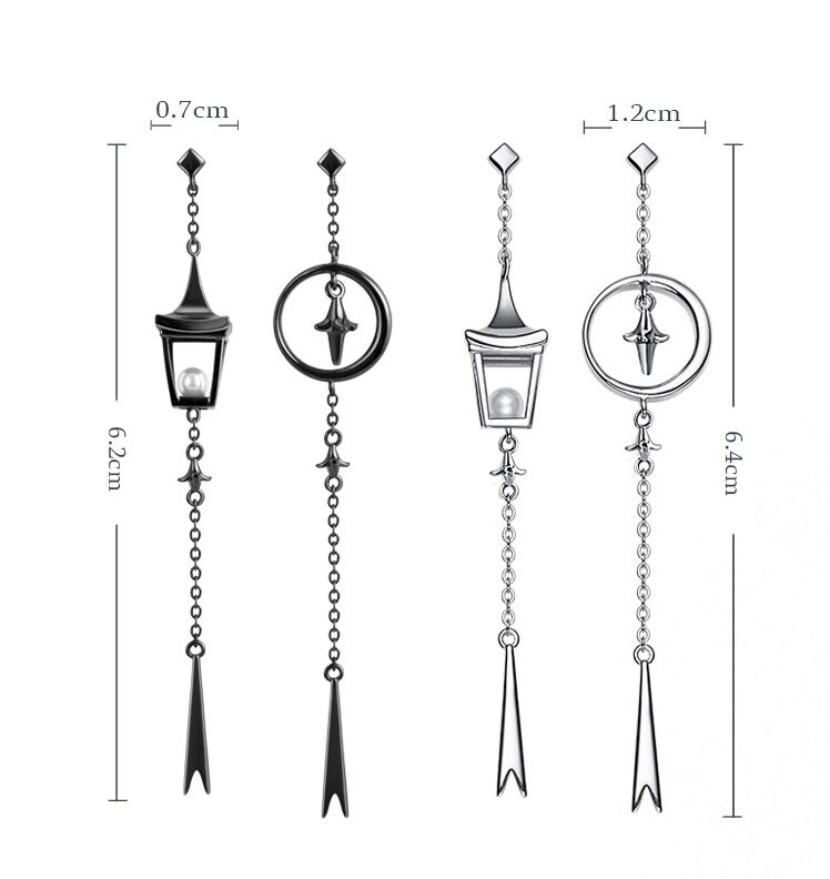 【即納】silver925 ランタンピアス(ブラック&シルバー)