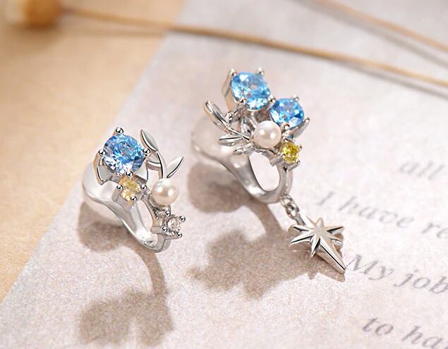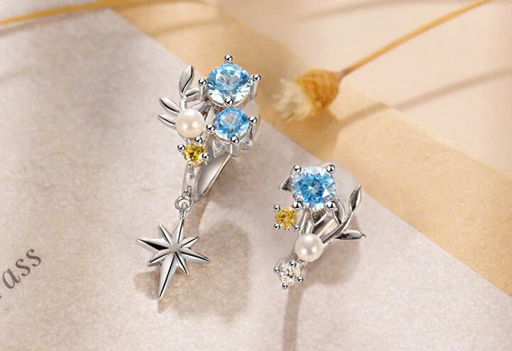 星や葉っぱモチーフ、キラキラのキュービックジルコニア、パールをちりばめた使いやすいクリップイヤリングです。
